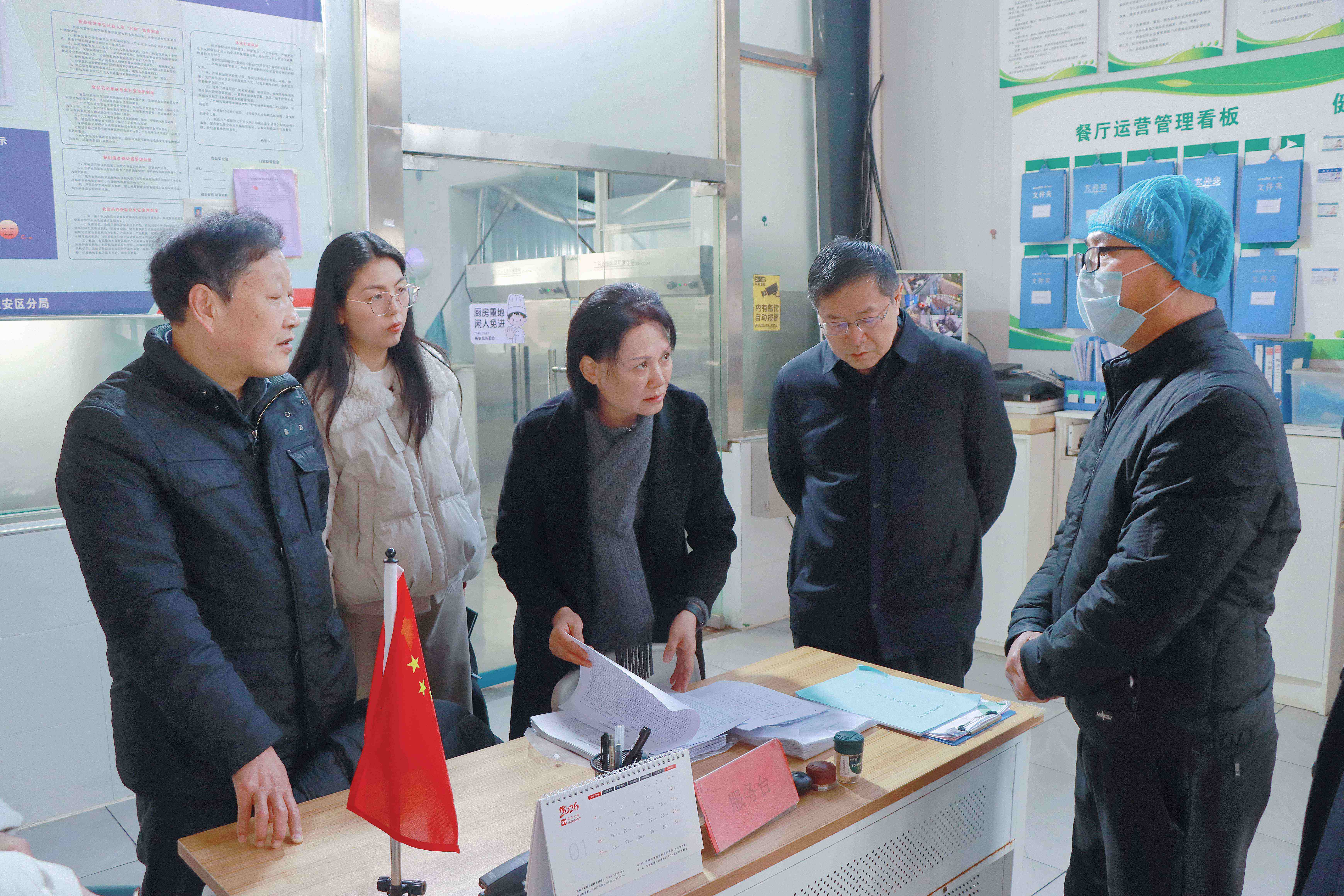 检查组走进食堂,重点查看了食材采购台账、食品留样记录、消毒记录等相关资料,并深入后厨各操作区域,就环境卫生、食材存储、消毒流程及餐饮加工规范等环节进行了细致检查。检查组强调食品安全关系到师生健康,务必做到管理严格、记录规范、环节可溯。